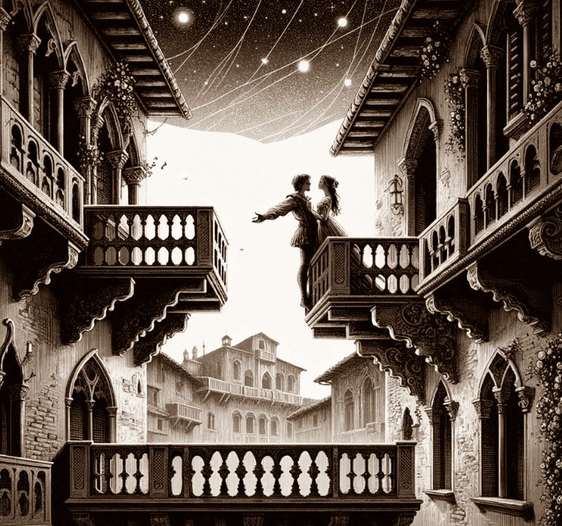 Ambientada en el corazón del Renacimiento italiano, en Verona, la obra narra la desventurada historia de amor entre Romeo Montesco y Julieta Capuleto, cuyas familias se encuentran enfrascadas en una disputa ancestral. A través de una serie de encuentros furtivos y un matrimonio secreto, los jóvenes amantes buscan desesperadamente superar las barreras que los separan, solo para encontrarse atrapados en una cadena de eventos trágicos que culmina en un desenlace tan emotivo como devastador.