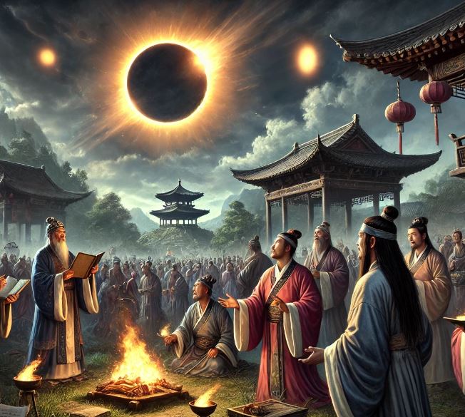 El desconcierto fue total, y no es para menos: nadie había advertido que algo así ocurriría. Los astrónomos de la corte imperial, Hsi y Ho, a quienes se confiaba la tarea de prever estos fenómenos, no hicieron ninguna predicción al respecto. Se comenta que, en lugar de estar atentos, fueron sorprendidos celebrando y bebiendo mientras la Luna cubría el sol, dejando a todos sin una explicación.