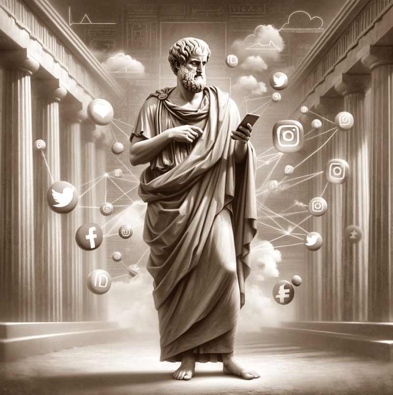 J de Crónica Moderna se sienta con Aristóteles para explorar su perspectiva sobre los smartphones y las redes sociales. A través de este intercambio, buscamos comprender cómo las enseñanzas del antiguo filósofo podrían iluminar los desafíos y oportunidades que presenta la tecnología moderna.